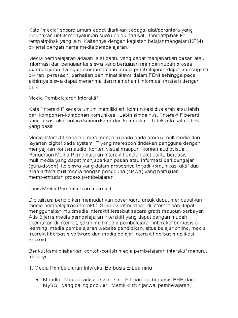 Pembelajaran merupakan suatu proses atau kegiatan yang sistematis dan sistemik yang bersifat interaktif dan komunikatif antara pendidik guru dengan siswa sumber. Syarat Media Pembelajaran Menurut Para Ahli. Pengertian tersebut sejalan dengan Prastowo dalam Jamilah dkk mengatakan pengertian bahan ajar yang bersifat interaktif merupakan bahan pembelajaran yang menggabungkan berbagai.